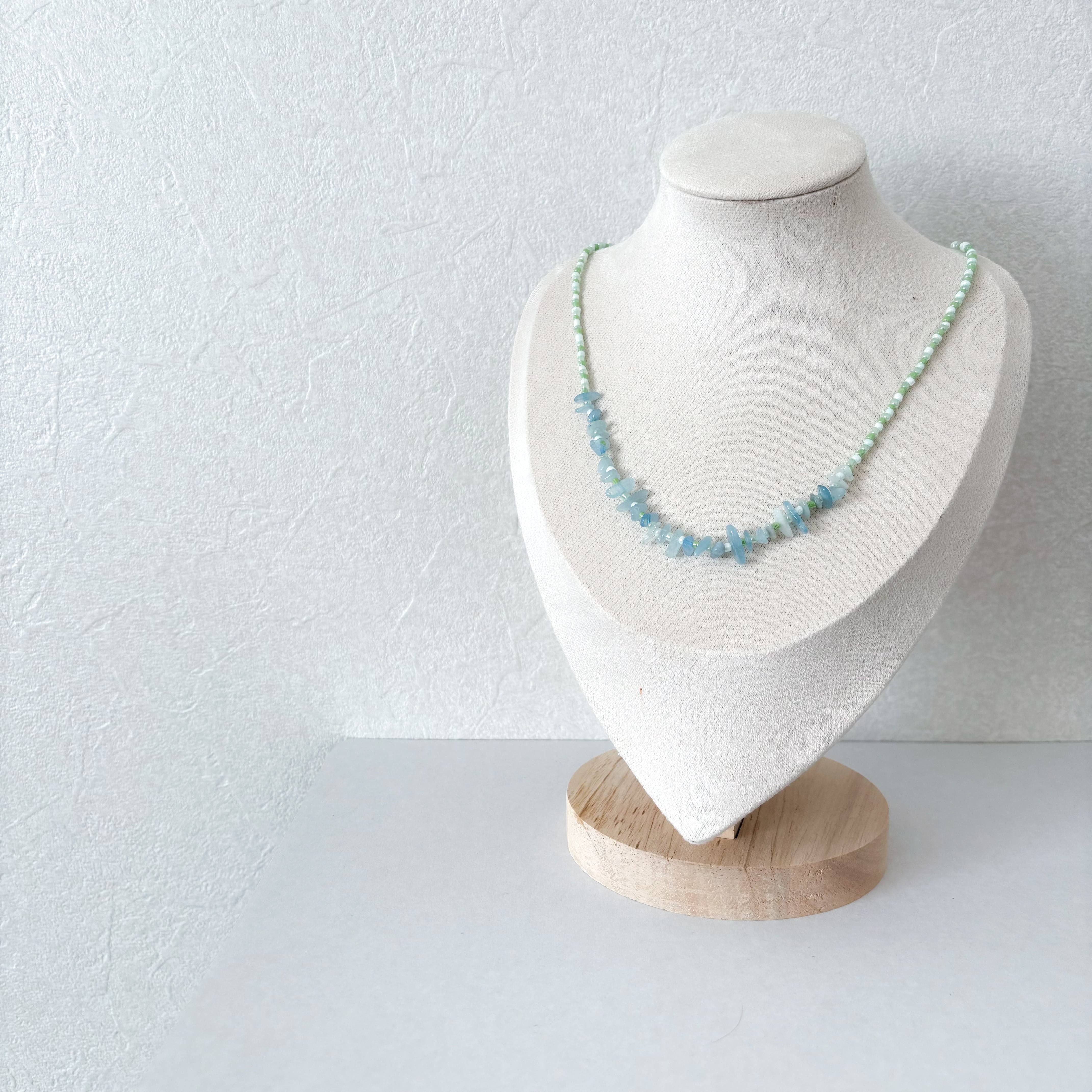 青と緑のビーズネックレス。**